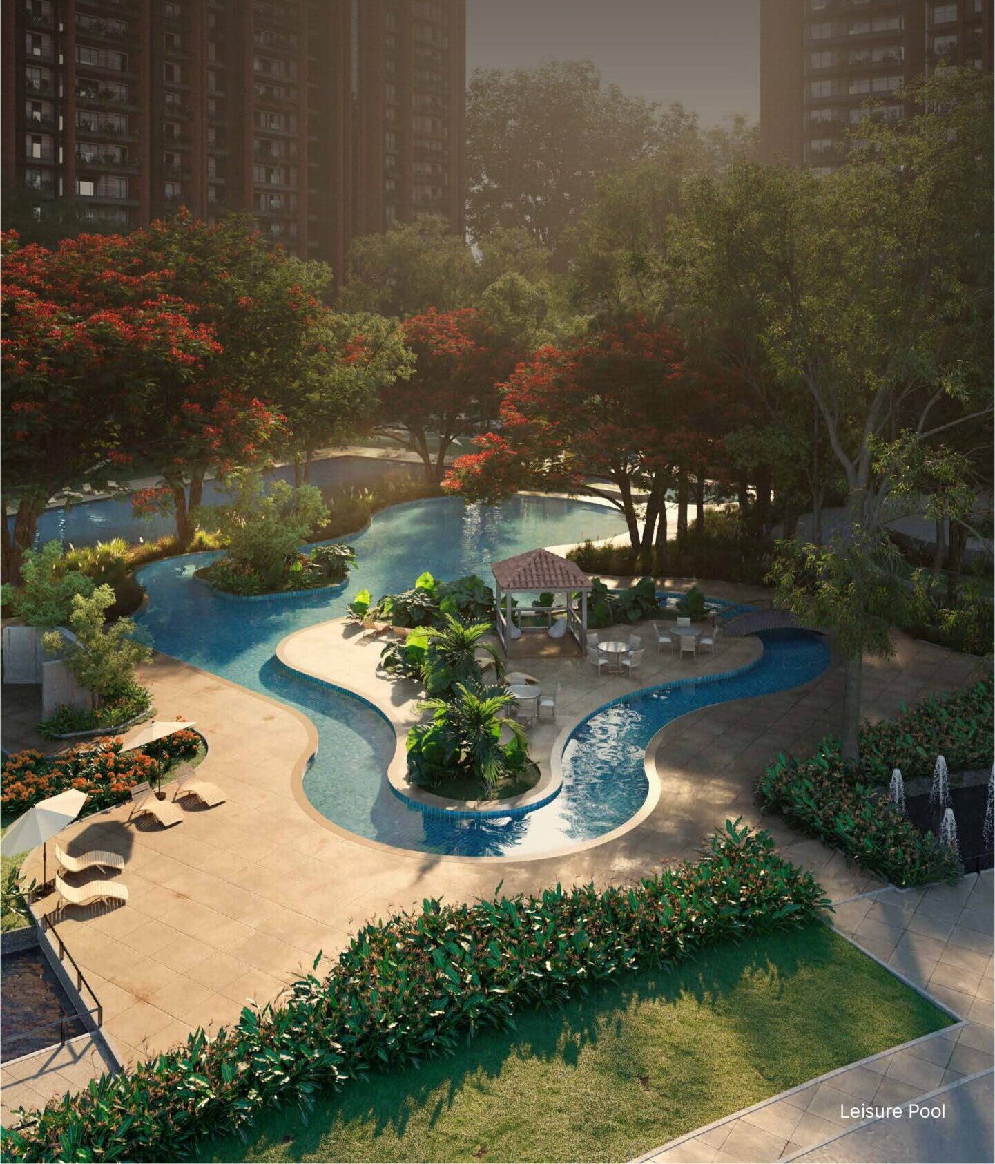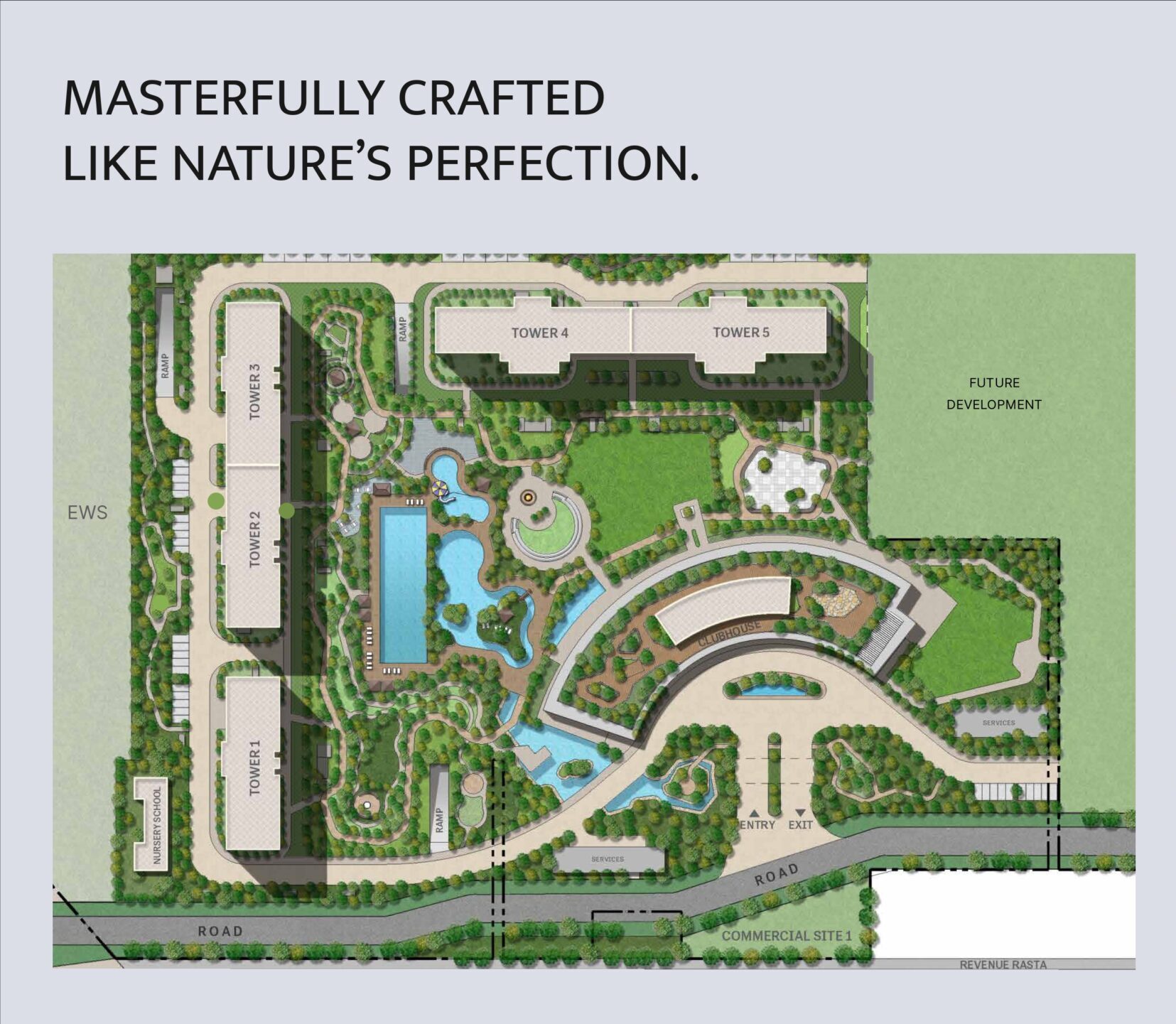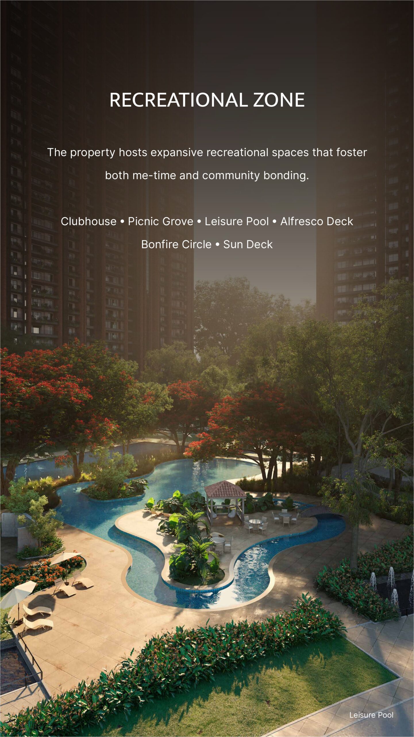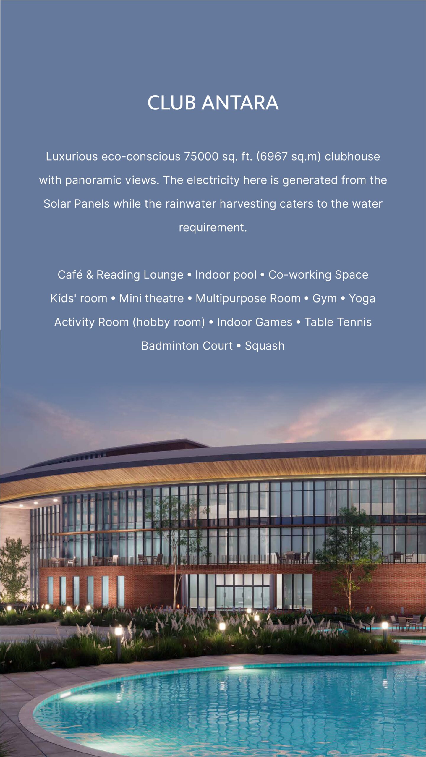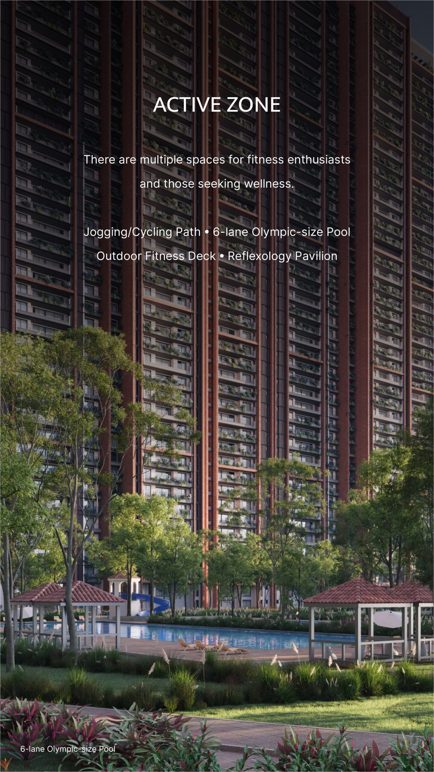 The project provides a clubhouse, gym, swimming pool, landscaped gardens, children’s play area, sports facilities, jogging and cycling tracks, yoga zones, and round-the-clock security.